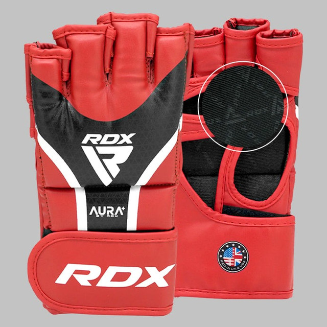 Покращіть свої тренування/спаринги за допомогою AURA PLUS T-17 від RDX. Виготовлені з першокласної шкіри Kalix Skin-Maya Hide™, ці рукавички гарантують неперевершену довговічність. Ідеальне поєднання формованої піни за технологією IMF і піни Max-Shock™ Equilibrium забезпечує захист найвищого рівня. Внутрішня підкладка Dazzle Fabric, що відповідає вимогам REACH, відводить вологу, забезпечуючи сухе та зручне захоплення. Застібка Quick-EZ на липучках забезпечує надійне кріплення, а ергономічна посадка забезпечує досконале захоплення.